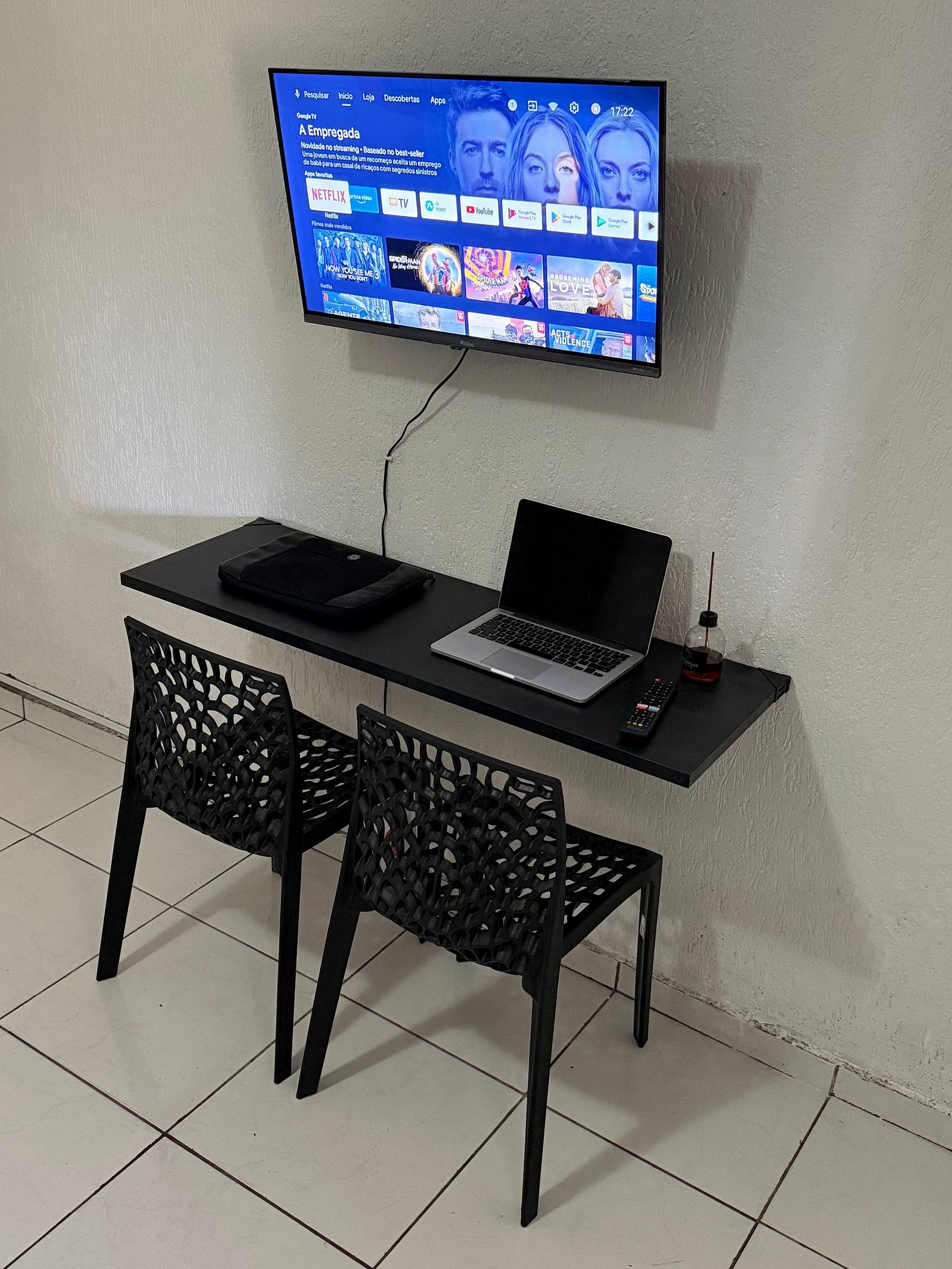 Quarto amplo, confortável e bem iluminado, equipado com cama queen size, TV smart com streaming, WiFi rápido, cortinas blackout e enxoval completo. Ambiente limpo, arejado e ideal para descanso após um dia de trabalho ou lazer. Perfeito para estadias curtas ou longas.