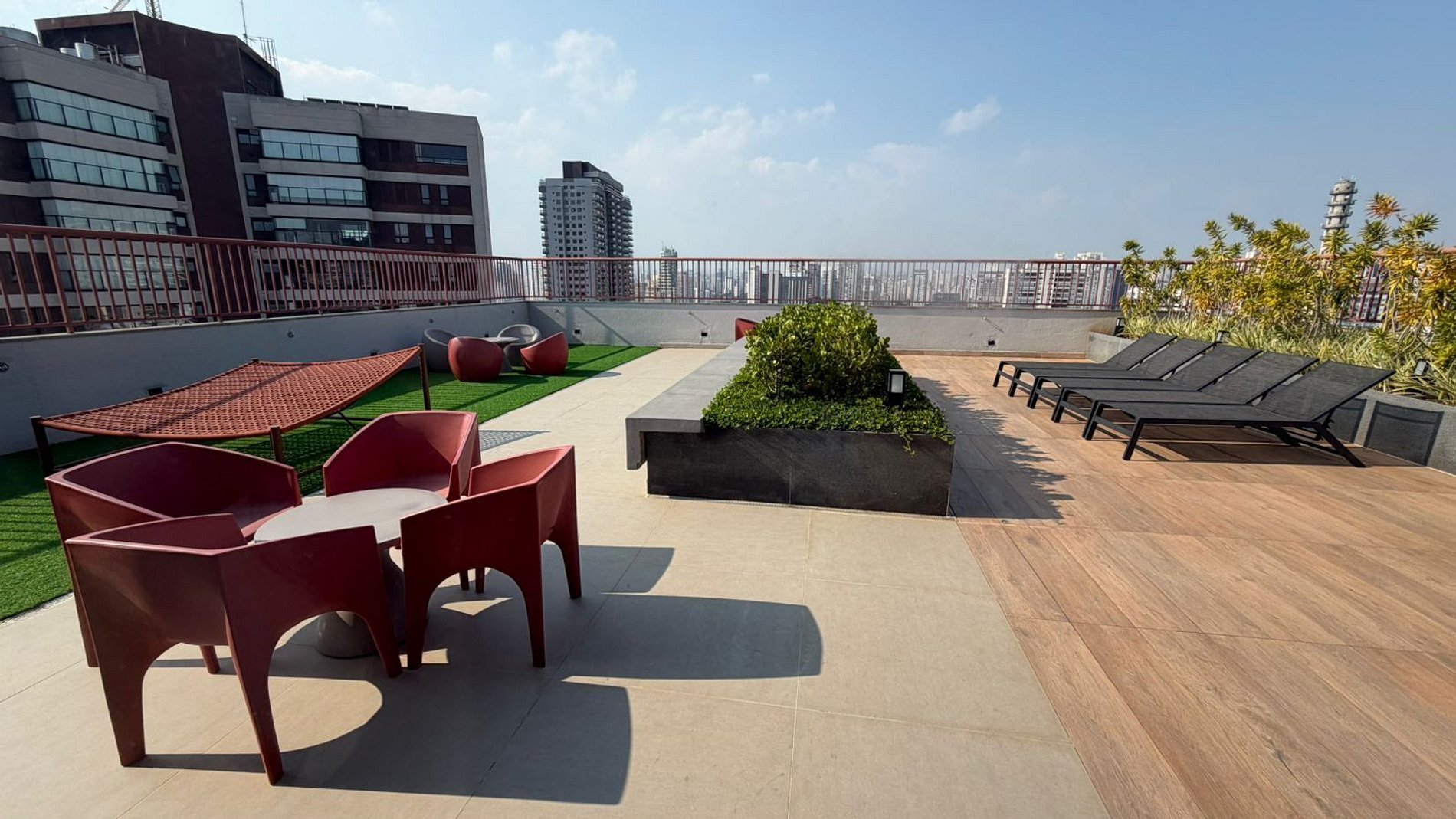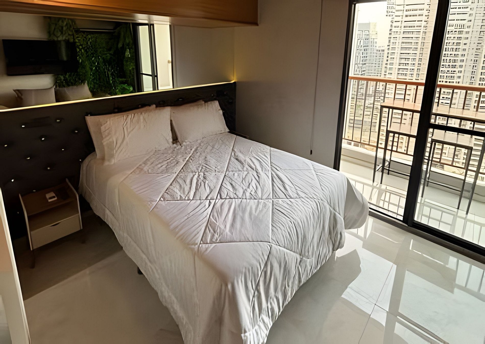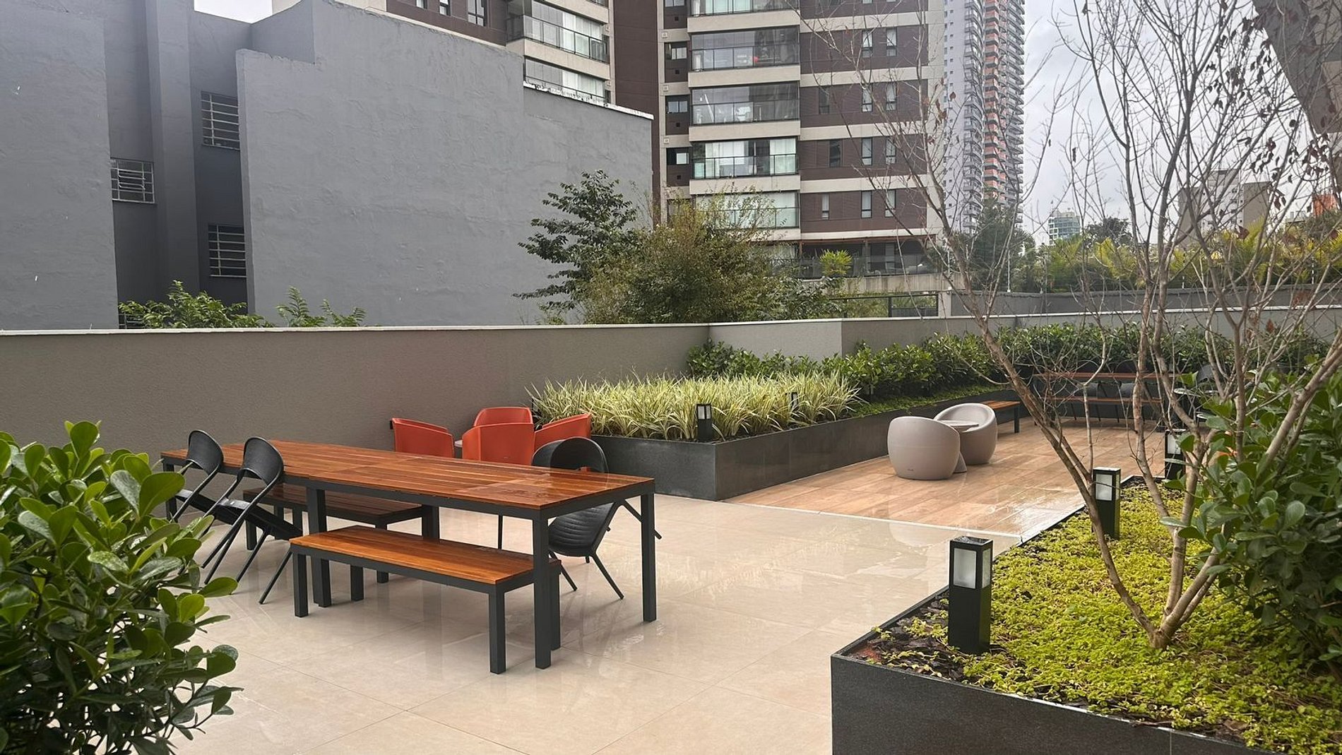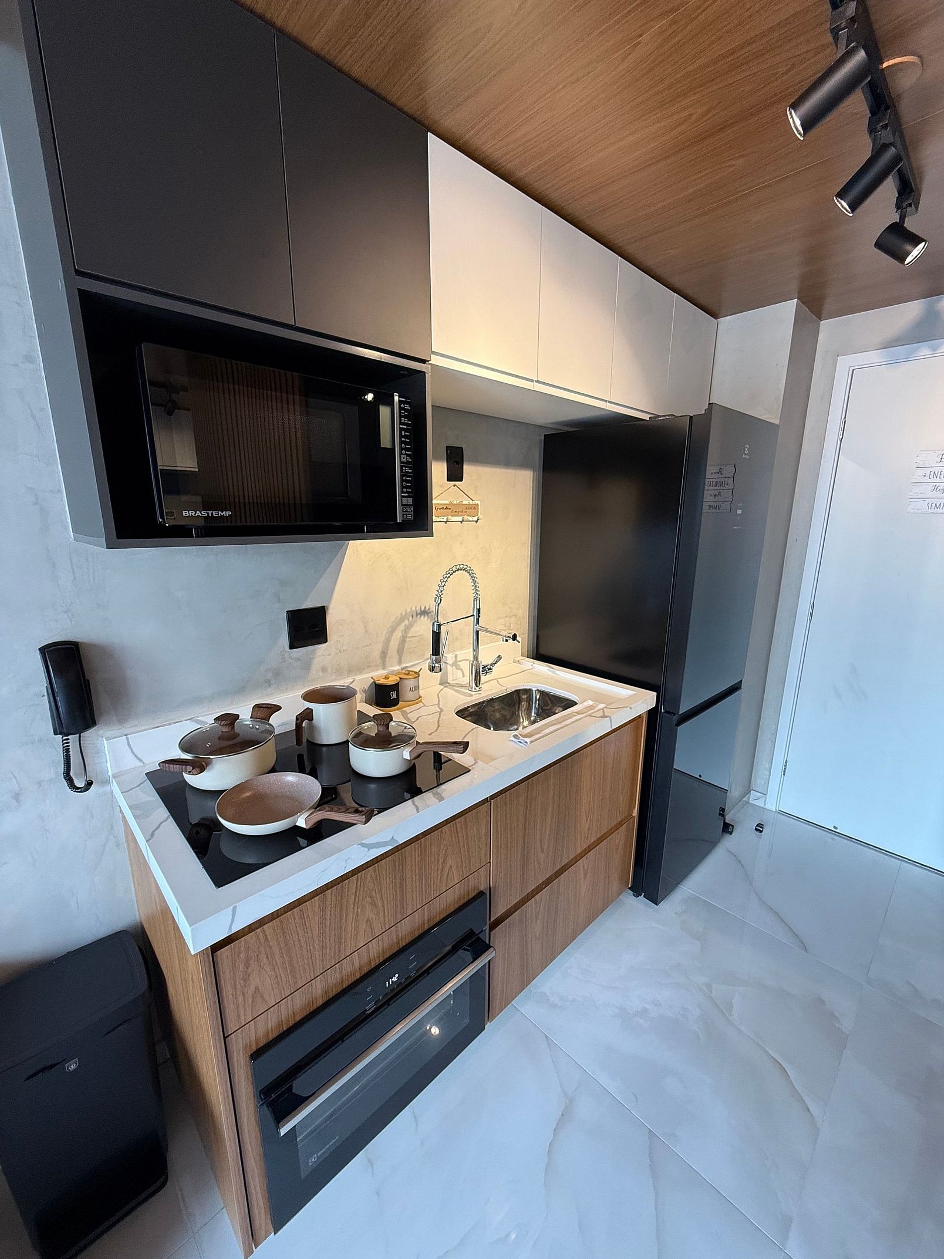 A 7 minutos a pé da estação de metrô Brooklin. Esse lindo studio foi decorado e mobiliado pensando em cada detalhe da sua estadia, seja para estudos, trabalho ou viagem a proposta é trazer um ambiente aconchegante e moderno com tudo que você precisa, proporcionando tranquilidade e conforto no seu dia a dia. - Fitness interno/externo - Espaço Gourmet - Jardim - Coworking - Churrasqueira - Bicicletário - Lavanderia - Lobby - Rooftop - Terraço